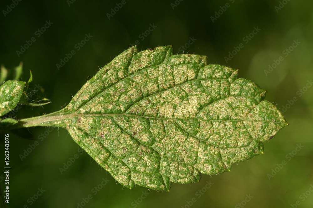Obrazy Liście - Red spider mite ( Tetranychus urticae ) on leaf of lemon balm #126248076