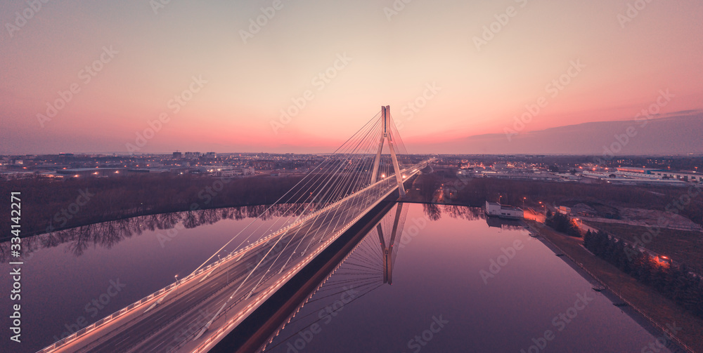 Pomost - Most Mazowieckiego w Rzeszowie o zachodzie słońca #334142271