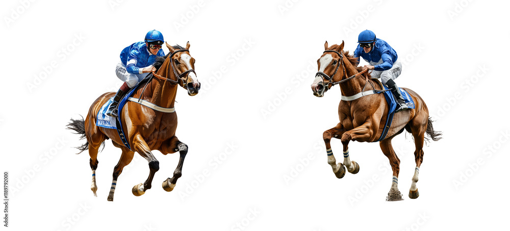 Konie - Racing Horses with Jockeys on Transparent Background #1189792000