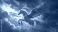 Konie - Majestic winged horse soaring through dark storm clouds - epic fantasy stock photo. Stormborne... #1268178533