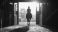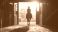 • A rider in full equestrian attire guides her saddled horse toward the exit, the stable doors framing their silhouettes against the bright sky, dynamic mid-range shot.
