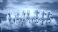Konie - Seven white horses running through the ocean water during a dramatic orange and blue sunset with... #1486046019
