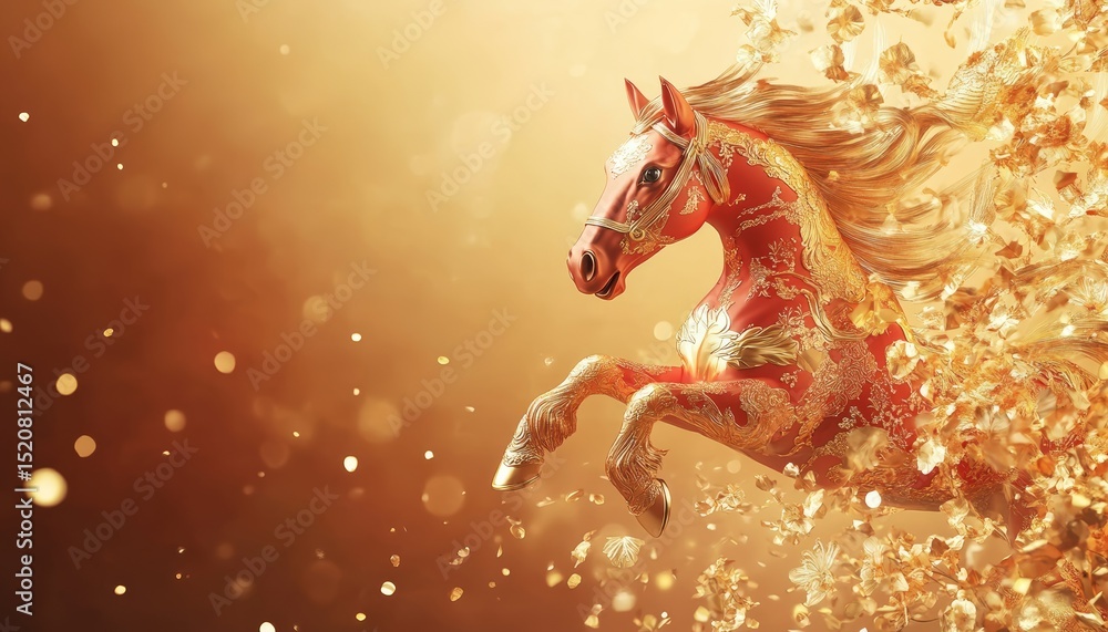 Konie - luxury red and gold chinese horse new year background, 2026 new year #1520812467