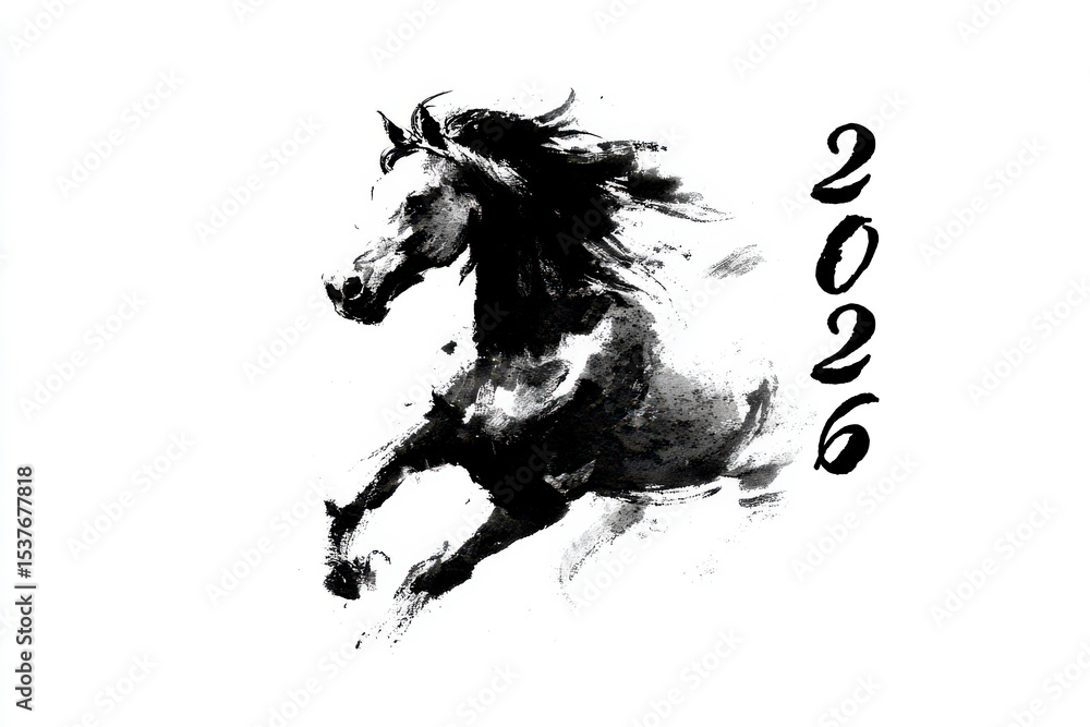 • Expressive black ink horse for Chinese Year of the Horse 2026 celebration