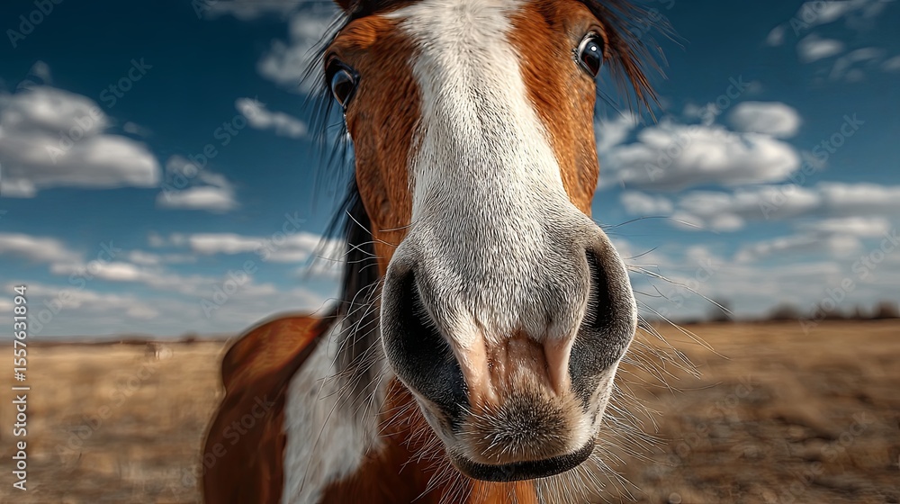 Konie - Curious Horse Close-Up Against Blue Sky #1557631894