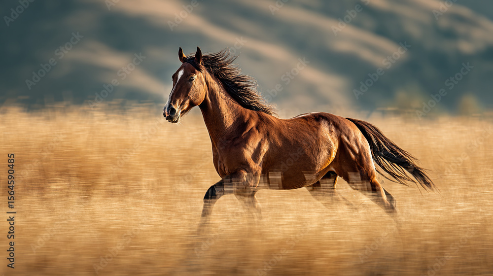 • Majestic horse galloping through a field, embodying freedom and wild spirit