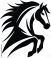 • Silhouette of a rearing horse with flowing mane and tail in black and white minimalistic style art on transparent background