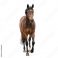 • A majestic brown horse with a white blaze on its forehead walks directly towards the camera. Its powerful build and elegant stride are captured, perfect for equestrian themes or animal studies.