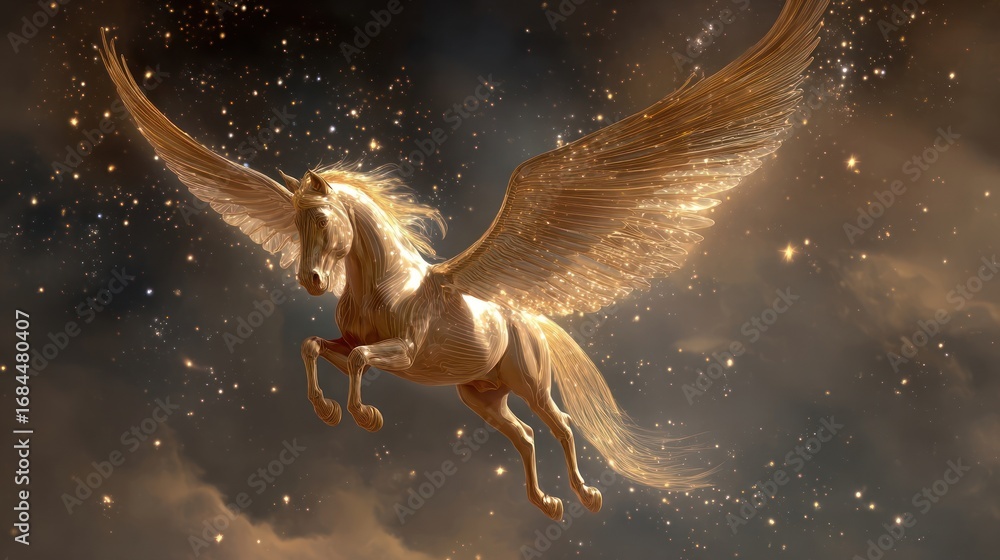 Konie - A galloping wild stallion silhouette with a flowing mane stands against the desert night sky, a... #1684480407