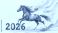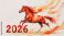 • Watercolor red fire horse with 2026 and flames, New Year of the Red Fire Horse
