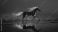 • Fiery horse running across shallow water at sunset surrounded by sparks and reflection symbolizing freedom energy and passion perfect for fantasy art and posters