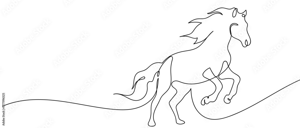 Konie - The horse is running, one continuous line. single line art drawing vector illustration Editable... #1777996325