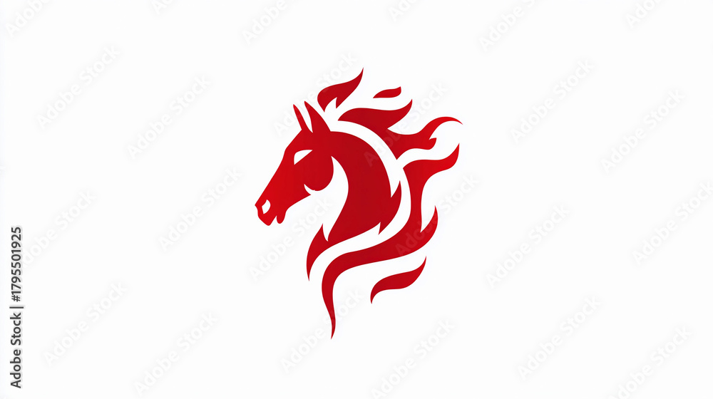 • Red horse logo design with flames on a simple white background