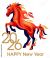 • Fiery horse isolated on a white background. Year of the horse with burning fire concept on a white background. New year 2026. Happy New Year!