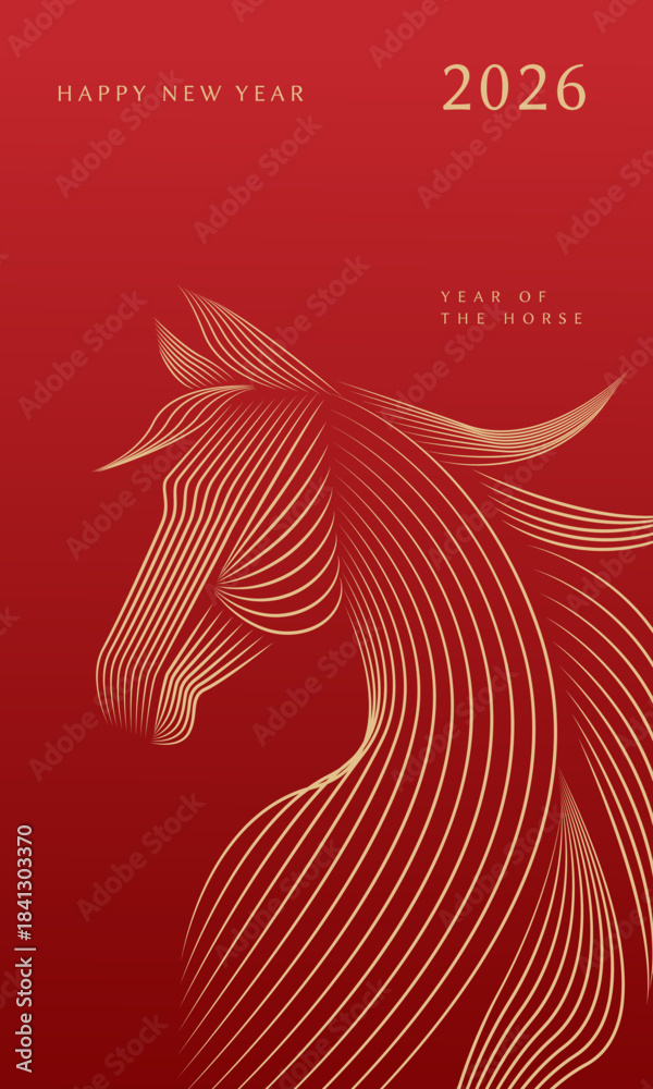 Konie - vector illustration of horse for chinese new year 2026 celebration invitation with blend line art #1841303370