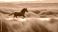 • Cheval noir galopant à travers une plaine avec effet de mouvement