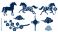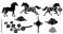 • Black silhouettes of horses floral designs and traditional chinese elements