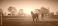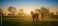 Konie - Thoroughbred horses walking in a field at sunrise. #552681712