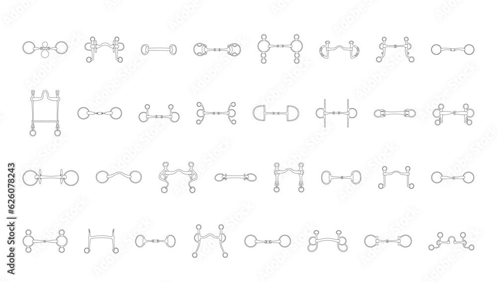 Konie - Set of the horse equestrian bridle bits, vector line illustration #626078243