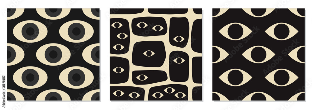 Zwierzęta geometria - Seamless patterns set with strange surreal creatures with eyes #1213992117