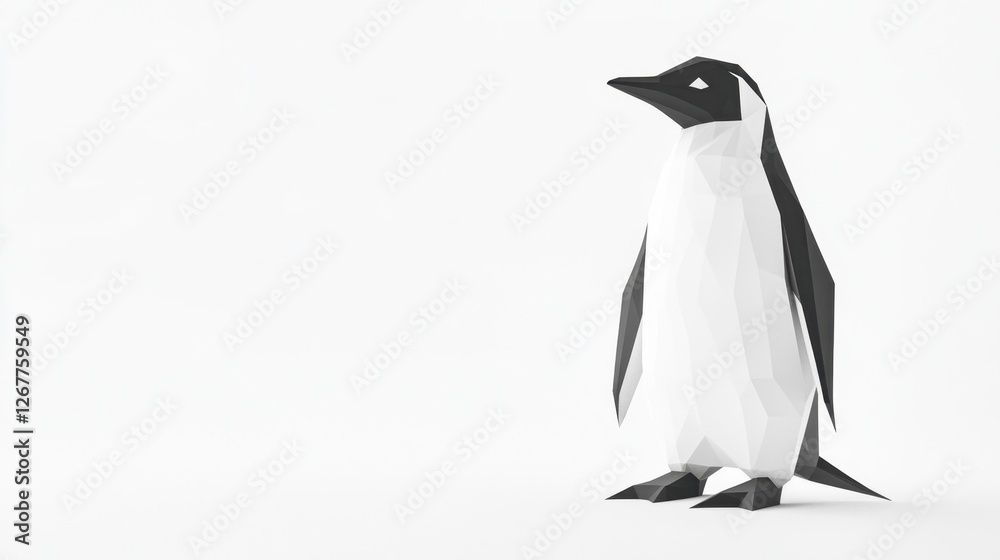 Zwierzęta geometria - 3D Low-Poly Origami Penguin Illustration: Modern Artistic Design in Black and White #1267759549