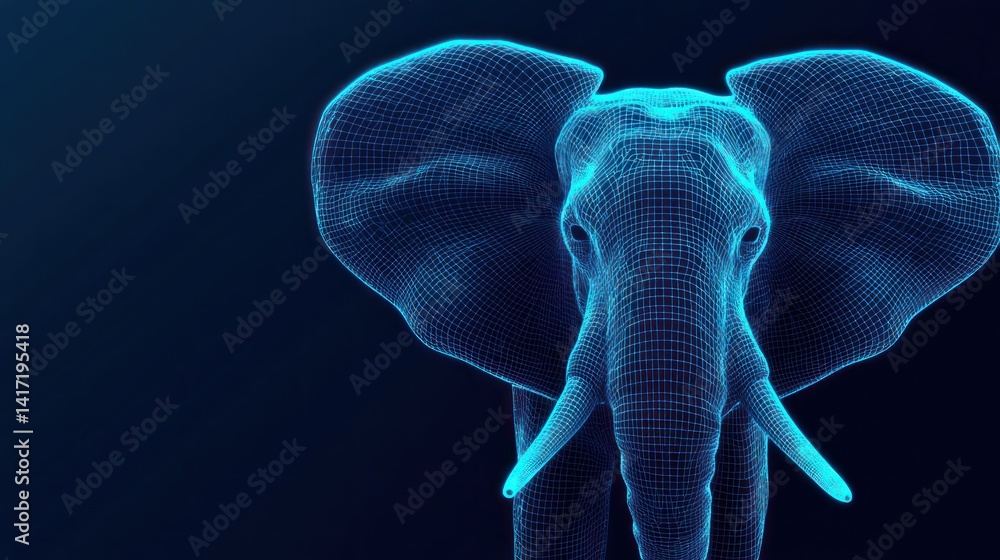Wireframe Elephant, Dark Background, Digital Art, Conservation