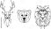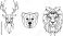 • Vector black silhouette of a tribal wolf, lion, and tiger head, a wild animal tattoo mascot illustration