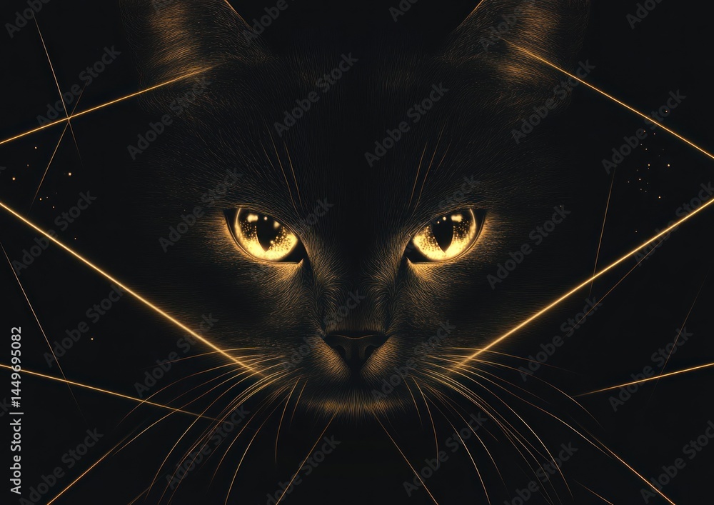 Zwierzęta geometria - Glowing eyes of a black cat in the dark. #1449695082