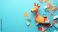 • Colorful Origami Dragon and Paper Scraps on a Tranquil Blue Backdrop