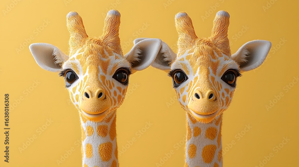 Zwierzęta geometria - Pair of cute 3D giraffe toy heads #1638016308