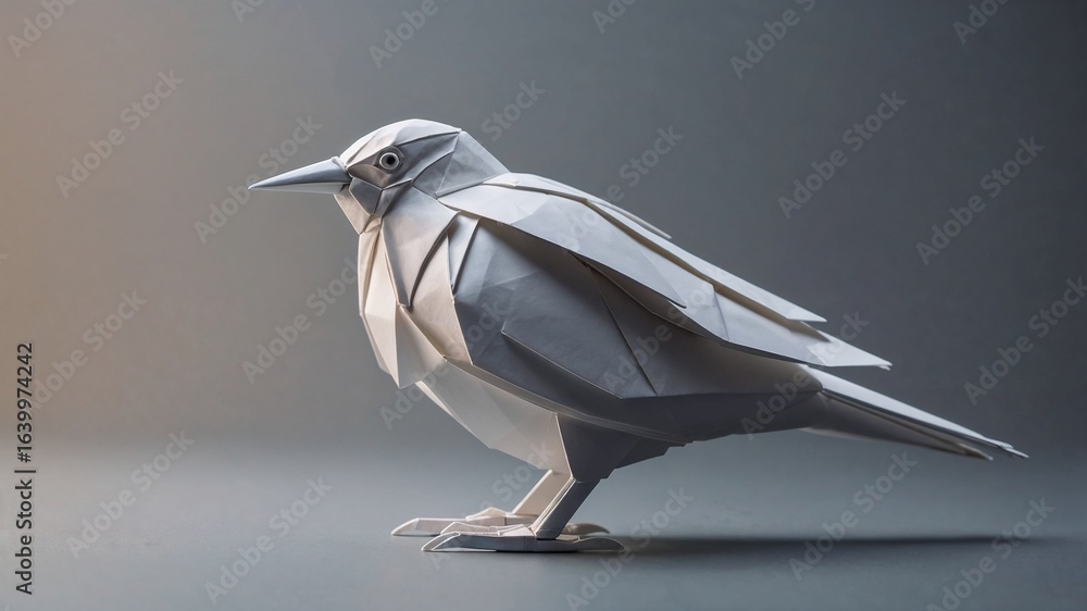Zwierzęta geometria - Hyper Realistic White Origami Bird on a Colored Background #1639974242
