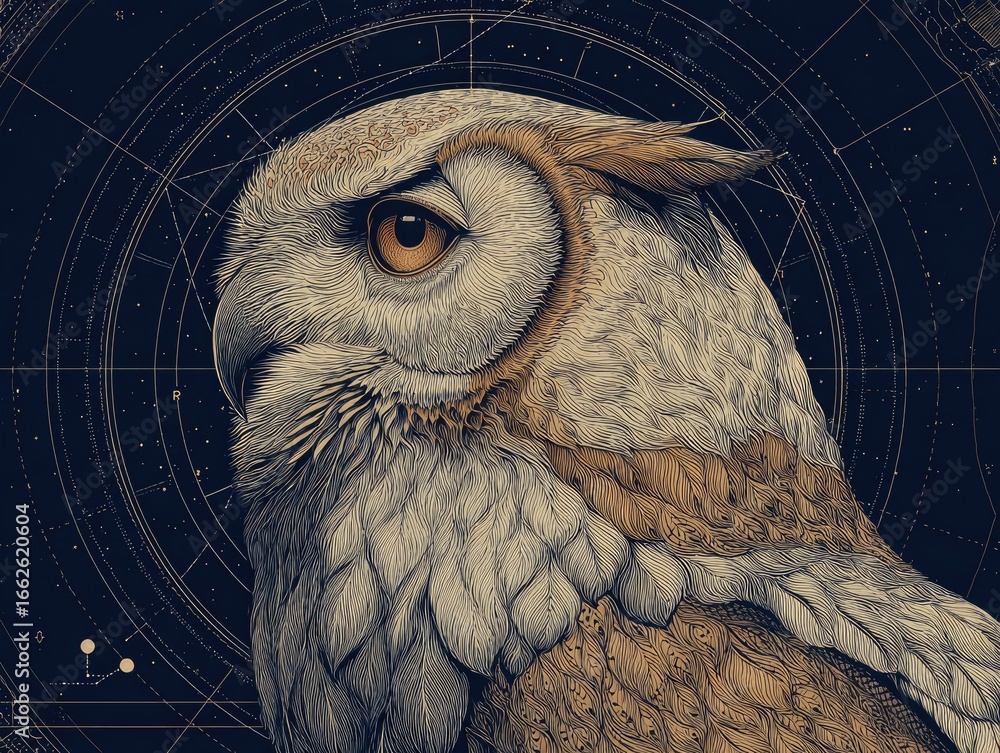 Zwierzęta geometria - Detailed owl portrait, cosmic backdrop #1662620604