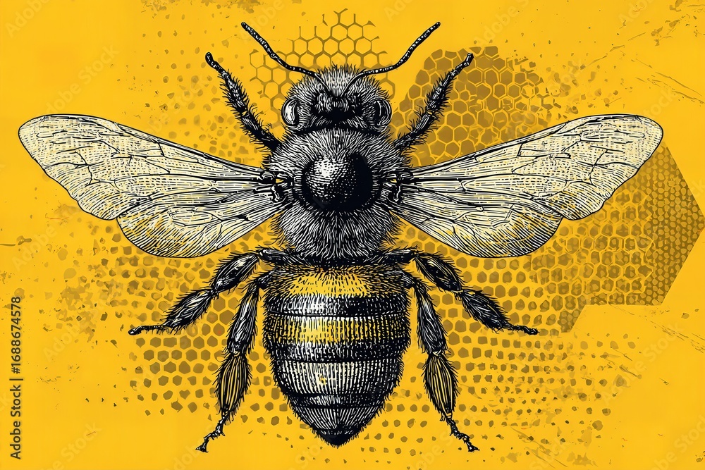 Zwierzęta geometria - Detailed bee illustration with honeycomb #1688674578