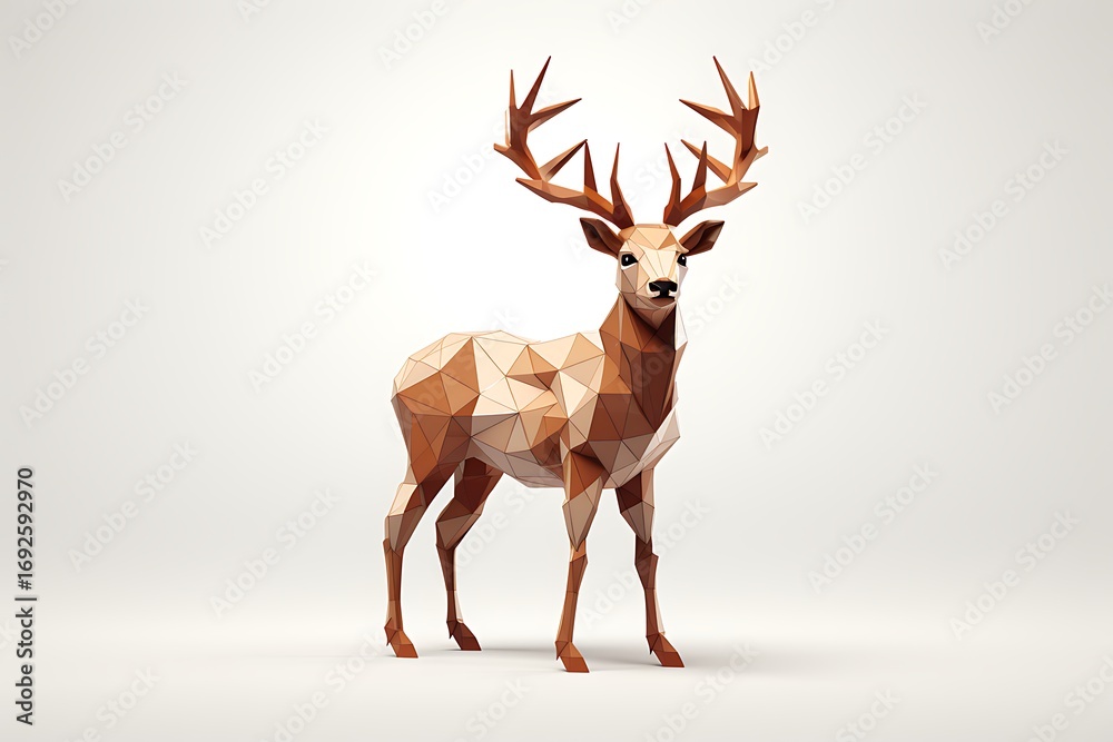 Zwierzęta geometria - A stylized low-poly deer stands proudly against a minimalistic white background, showcasing... #1692592970
