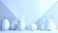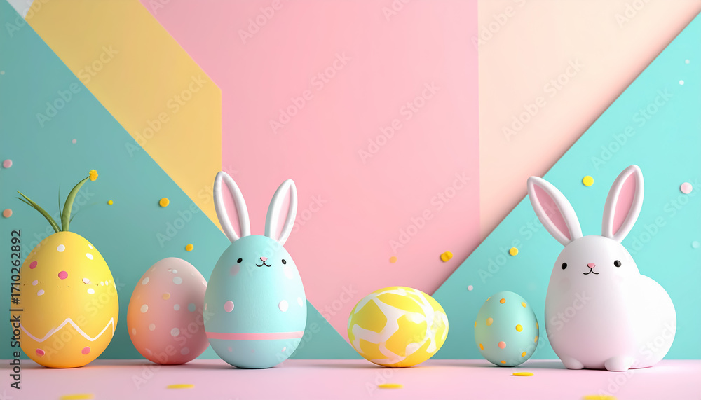 Zwierzęta geometria - 幾何学模様の背景に並ぶイースターバニーと卵のポップアート #1710262892