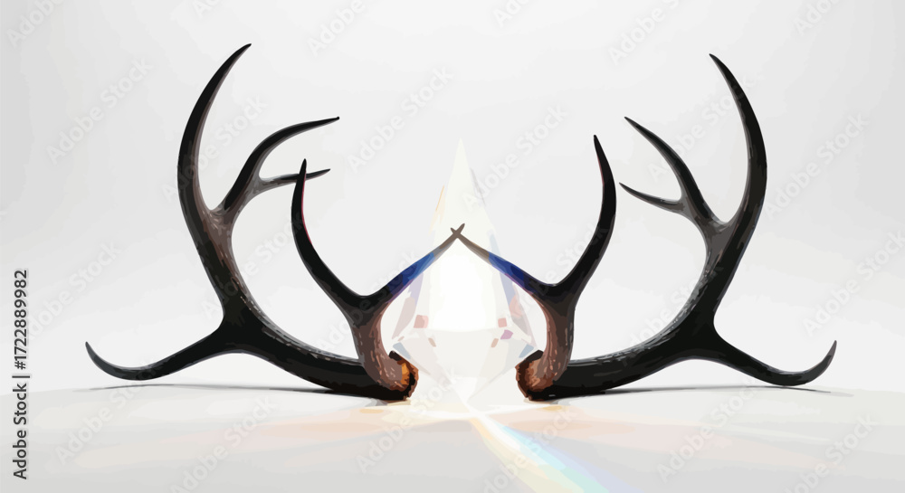 Geometric antlers juxtapositioning organic forms with crystalline reflections creates a modern art