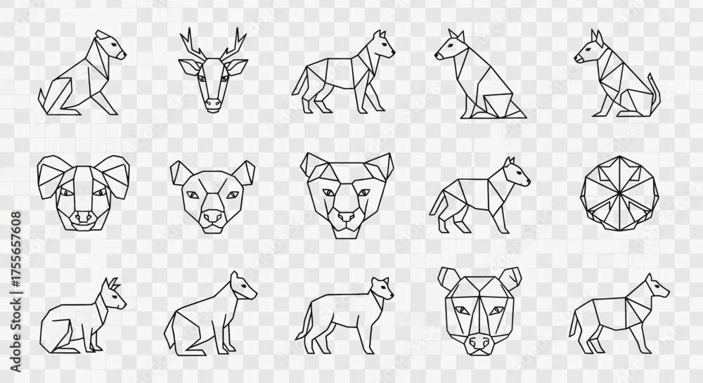 Zwierzęta geometria - A collection of various animal icons and heads designed in a minimalist, geometric, polygonal... #1755657608