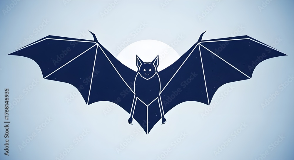 Zwierzęta geometria - Ilustración de murciélago volador con textura negra #1768146935