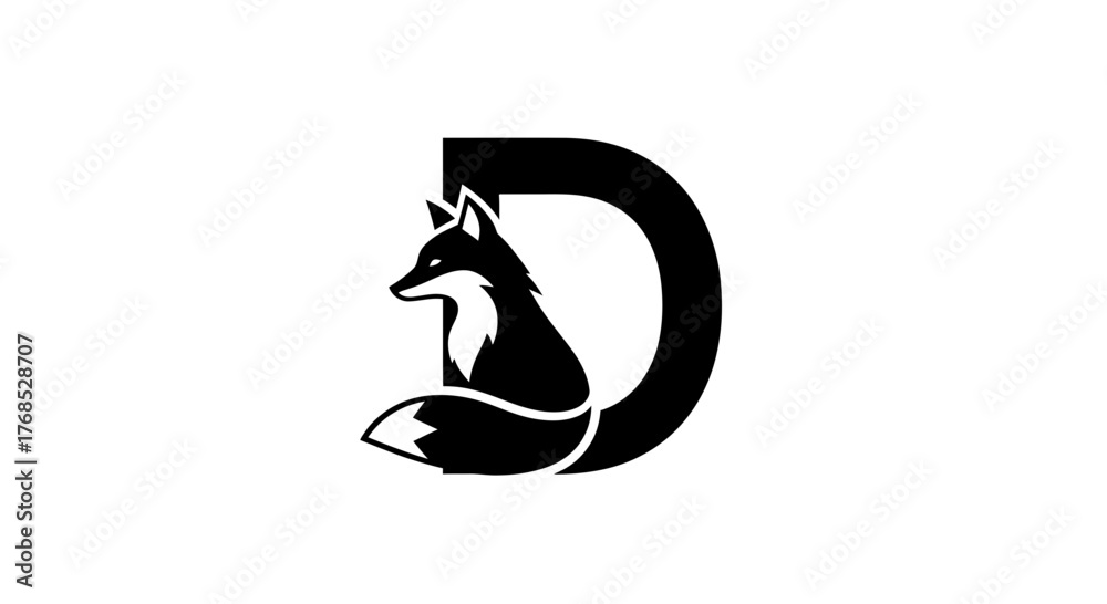 • Initial letter D and sitting fox abstract animal logo flat illustration