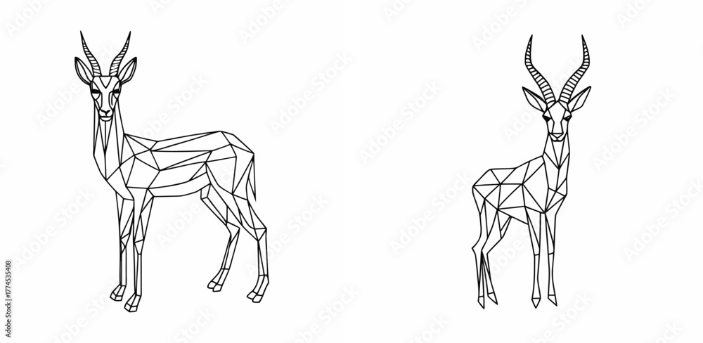 Zwierzęta geometria - Gazelle polygonal art illustration in minimalist black and white style, transparent background,... #1774535408