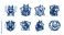 Collection of stylized wolf portraits in various geometric shapes, showcasing detailed illustrations.