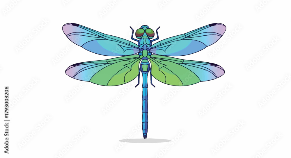 Zwierzęta geometria - Colorful dragonfly vector illustration featuring bold wings and a vibrant body, presented in a... #1793003206