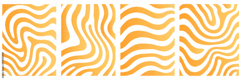 • 3d rendering, Tree trunk geometric curve, wave contour template set. zebra stripe pattern set orange abstract silhouette vector animal skin texture.