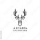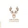 • A geometric deer head logo with antlers in green and brown, with text "ANTLER & EVERGREEN" below