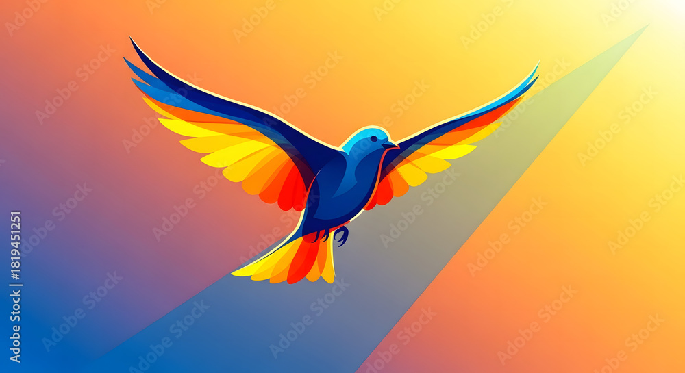 Zwierzęta geometria - Colorful tropical macaw vector illustration flying with abstract artistic blue wings #1819451251