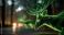 • Two neon green deer crafted from wireframe geometry at the forest's edge represent the blend of nature and technology, creating a surreal visual experience of modern digital art.