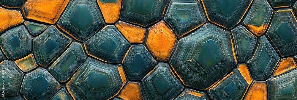 Zwierzęta geometria - Turtle shell texture with copy space. Close-up turtle pattern. Reptile shell design. Turtle... #1832853846