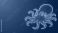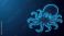 • Glowing blue wireframe octopus illustration on dark background