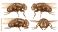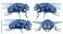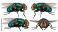 Zwierzęta geometria - Four isolated, highly detailed iridescent green bottle flies showcasing metallic exoskeletons and... #1854232058