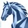 Zwierzęta geometria - Geometric horse head illustration in bold blue, red, and gold colors. Abstract polygonal animal... #1866037556